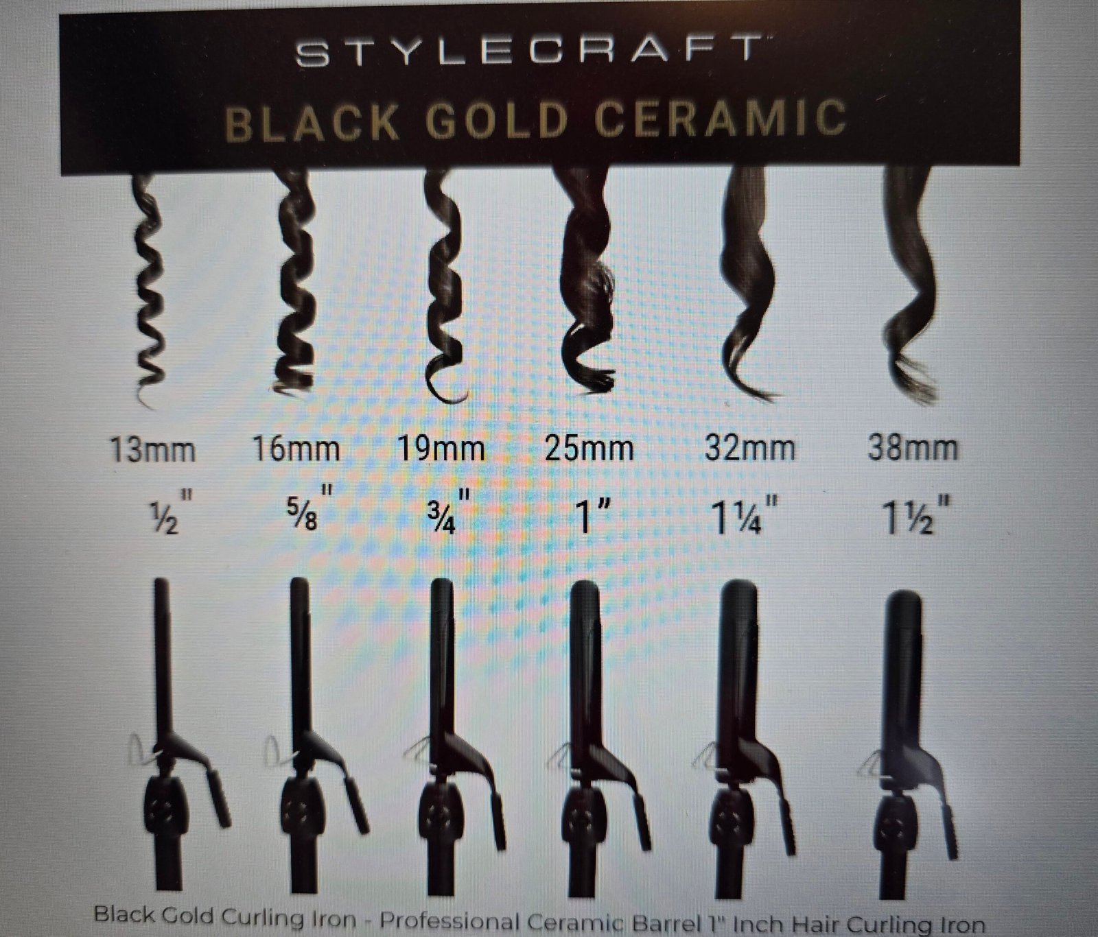 StyleCraft Black Gold Ceramic Stay-Temp Professional Curling Iron – Buy1, Get 1 Free
